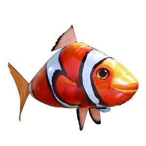The most original and possibly craziest Remote-Controlled product ever made! The giant sized flying fish is easy to control in the tightest of spaces using the remote control. The remote control also moves the fish up and down in the air by moving the ‘feeder fish’ forward (fish goes down) and backwards (so the fish flies higher). In this way the fish can even go up and down your stairs! The RC range is approximately fifty feet. This fish needs to be filled with Helium before it will fly. Helium is available at most florists and all retail stores that sell Helium party balloons. You can either take the fish and get it filled up locally, or buy a Helium canister to fill up the fish for use again and again. Apart from the Helium the fish is ready to fly straight out of the box, with all batteries included. So, get some Helium and you will be flying around your Giant Fish in minutes.