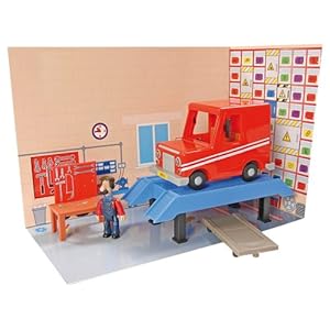 Postman Pat Ted Glen Workshop with VehicleHelp Ted Glen fix the vehicles of Greendale with this fantastic workshop and vehicle set. Raise the SDS on the ramp then put Ted on the trolley ready to inspect the vehicle. Also includes a workbench with tool rack. With double sided scenic card showing Ted's workshop.