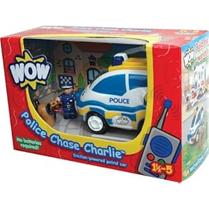 I’m PC Charlie and I’m your trusty PC in WOW town. I work tirelessly night and day with my friends, the Police Patrol Riders and Police Plane Pete to make sure everyone is safe and happy in WOW town. I use my powerful motor to make my way around town and my motor sounds make everyone aware I’m on the beat! My policeman driver, Cash, can open the flip top roof using the ‘magic’ WOW push button too!